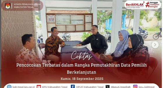 Slawi- Komisi Pemilihan Umum (KPU) Kabupaten Tegal melaksanakan kegiatan Coklit Terbatas (Coktas) yang dilaksanakan dari tanggal 22- 25 September 2025 dengan menurunkan tim ke sejumlah Desa di Kabupaten Tegal