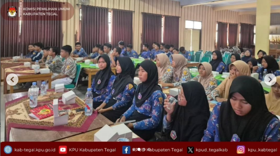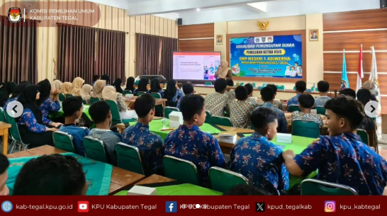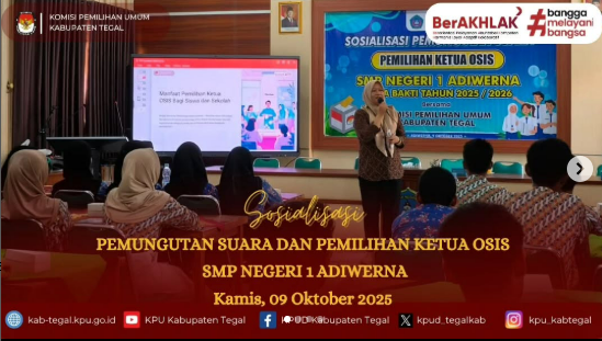 Slawi- KPU Kabupaten Tegal hadir dalam rangka memberikan sosialisasi pemungutan suara dan pemilihan ketua OSIS di SMP Negeri 1 Adiwerna, Kamis, (09/10/2025)