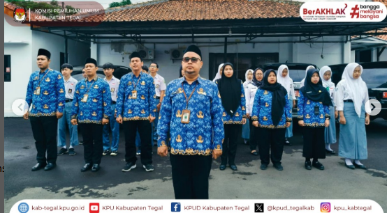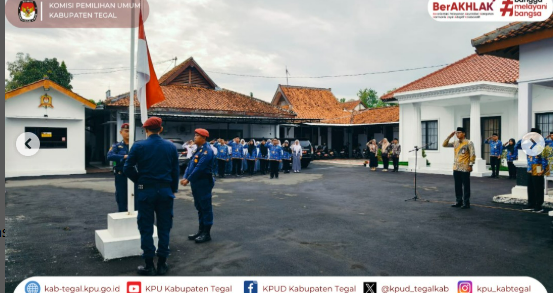 Upacara dipimpin oleh Arif Syaefudin (Kasubbag Rendatin), dengan Himawan Tri Pratiwi (Ketua KPU Kabupaten Tegal) sebagai pembina upacara dengan diikuti oleh Komisioner KPU, Sekretaris, Pejabat Struktural, serta seluruh Staf KPU Kabupaten Tegal .