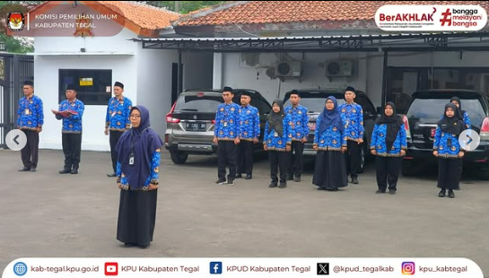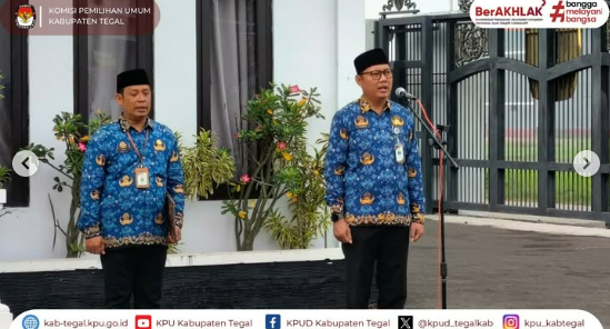Upacara dipimpin oleh Nelly Fardilah Atiqoh Kasubbag KUL, dengan Yudi Rolies Priyadi Sekretaris KPU Kabupaten Tegal sebagai pembina upacara. Kegiatan berlangsung khidmat di halaman Kantor KPU Kabupaten Tegal.