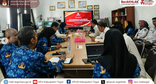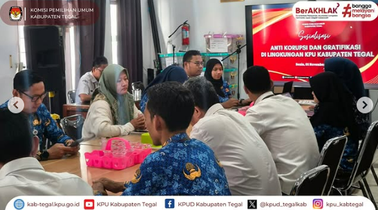 KPU Kabupaten Tegal mengadakan Sosialisasi Anti Korupsi dan Gratifikasi di Lingkungan KPU Kabupaten Tegal. Kegiatan ini diikuti oleh seluruh pegawai KPU Kabupaten Tegal. Senin (1/12/2025)