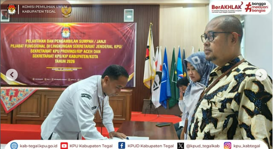 Tiga Pegawai KPU Kabupaten Tegal Mengikuti Pelantikan Jabatan Fungsional Tata Kelola Pemilu 2026