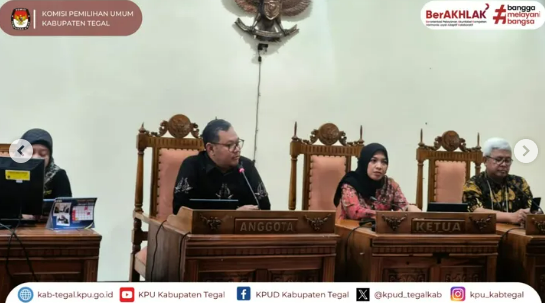 Slawi- Komisi Pemilihan Umum Kabupaten Tegal menyampaikan Laporan Pejabat Pengelola Informasi dan Dokumentasi (PPID) Tahun 2025 kepada Komisi Informasi Provinsi Jawa Tengah yang diagendakan secara serentak oleh KPU Provinsi Jawa Tengah bersama KPU Kabupaten/Kota se-Jawa Tengah pada Senin, 9 Februari 2026.