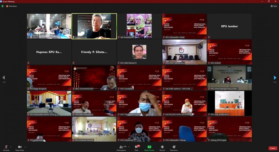 Slawi – Kamis (20/05/2021) bertempat di Gedung Rumah Pintar Pemilu (RPP), KPU Kabupaten Tegal mengikuti Focus Group Discusion (FGD) dalam rangka Program Desa Peduli Pemilu dan Pemilihan (DP3) yang diselenggarakan secara daring melalui zoom meeting oleh KPU Republik Indonesia. Peserta kegiatan ini adalah seluruh Satker KPU ditingkat Provinsi dan Kabupaten/Kota se Indonesia. Hadir dalam acara ini Ketua KPU Tegal, Nurokhman serta Anggota KPU Tegal, Adi Purwanto, Ika Andreiastuti, Muhammad Fasihin, dan Himawan T.P.