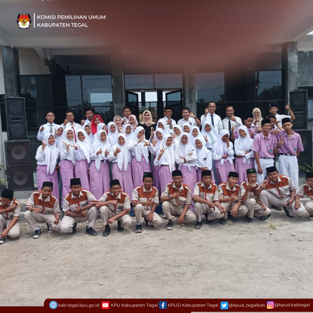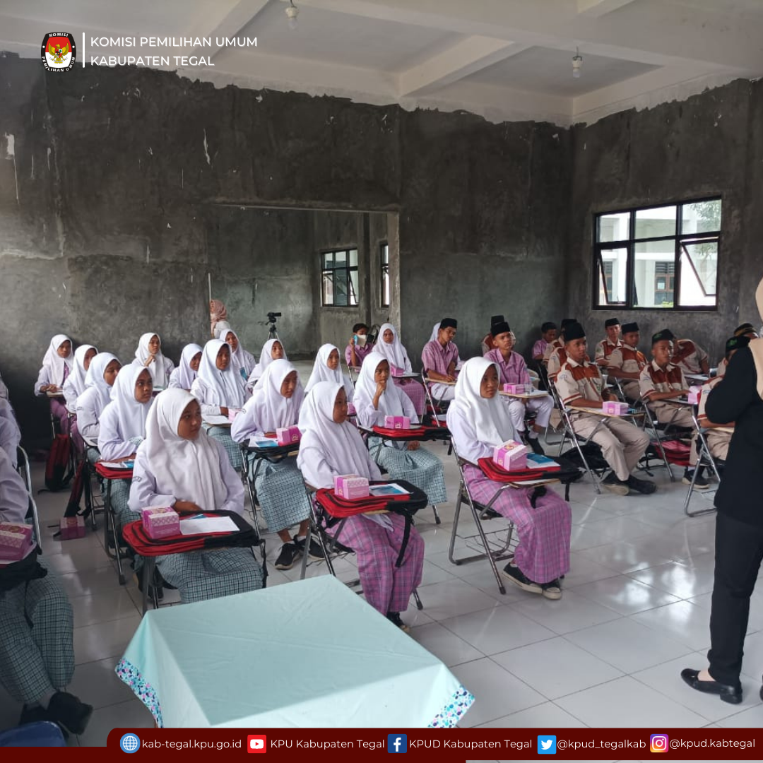 SLAWI - Komisioner Komisi Pemilihan Umum (KPU) Kabupaten Tegal, Ika Andreias Tuti menjadi Narasumber pada giat Pendidikan Politik Pemilih Pemula yang diadakan Bakesbangpol Kabupaten Tegal, Rabu 31 Agustus 2022 di SMK Maarif NU Suradadi.
