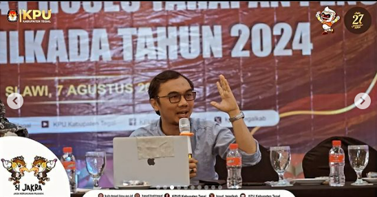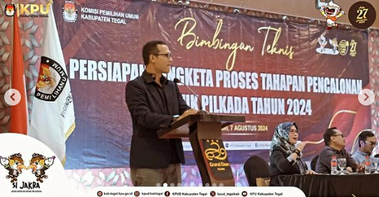 Slawi- KPU Kabupaten Tegal menyelenggarakan Bimbingan Teknis Persiapan Sengketa Proses Tahapan Pencalonan Untuk Pilkada Tahun 2024 di Ruang Syailendra, Grand Dian Hotel Slawi, Rabu (7/08/2024).