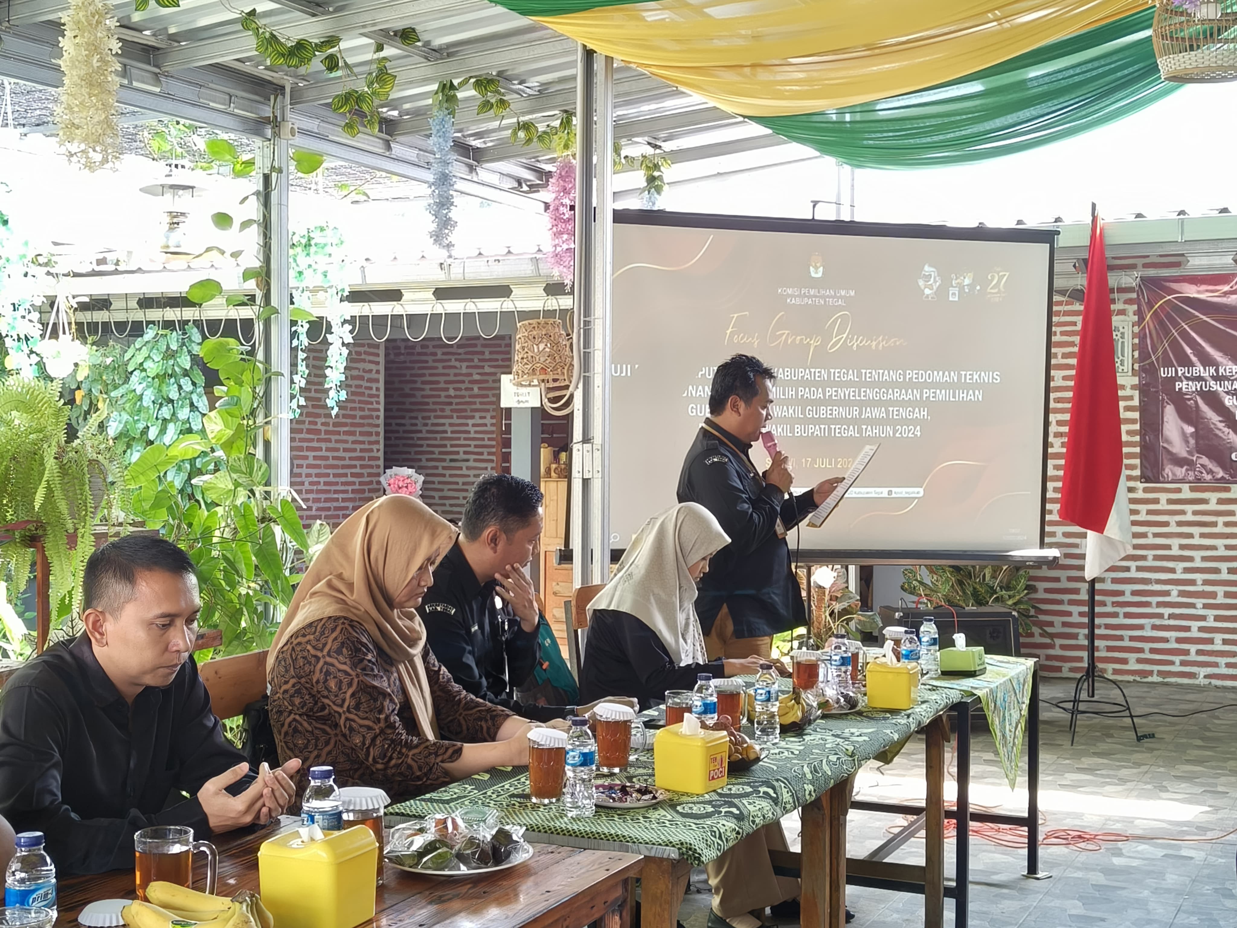 Slawi- KPU Kabupaten Tegal menyelenggarakan Focus Group Discussion (FGD) Uji Publik Keputusan KPU Kabupaten Tegal Tentang Pedoman Teknis Penyusunan Daftar Pemilih Pada Penyelenggaraan Pemilihan Gubernur dan Wakil Gubernur Jawa Tengah, Bupati dan Wakil Bupati Tegal Tahun 2024 di Slawi pada hari Rabu (17/07/2024).