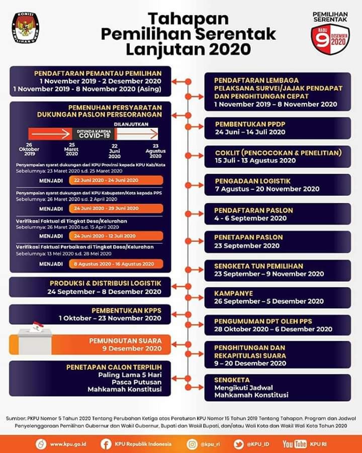 Lanjutan Tahapan Pemilihan ini Berdasarkan Keputusan Komisi Pemilihan Umum Republik Indonesia Nomor 258/PL.02-Kpt/01/KPU/VI/2020 tentang Penetapan Pelaksanaan Pemilihan Gubernur dan Wakil Gubernur, Bupati dan Wakil Bupati, dan/atau Wali Kota dan Wakil Wali Kota Serentak Lanjutan Tahun 2020.