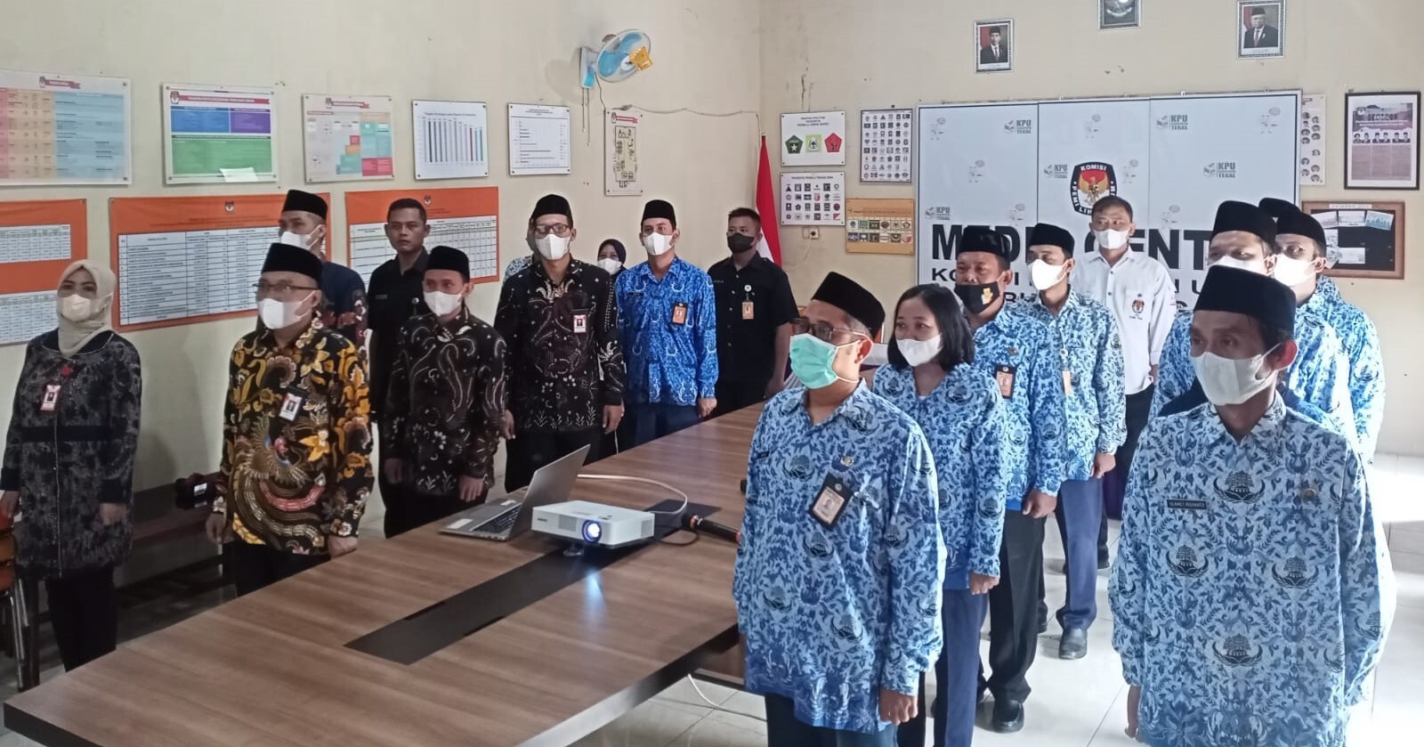 Slawi – Jajaran Komisioner dan Sekretariat KPU Kabupaten Tegal mengikuti Upacara Peringatan Hari Lahir Pancasila Tahun 2022 yang dilaksanakan di lapangan Pancasila Ende Provinsi Nusa Tenggara Timur, Rabu 1 Juni 2022 pukul 08.00 WITA secara virtual melalui saluran dikanal Youtube BPIP.