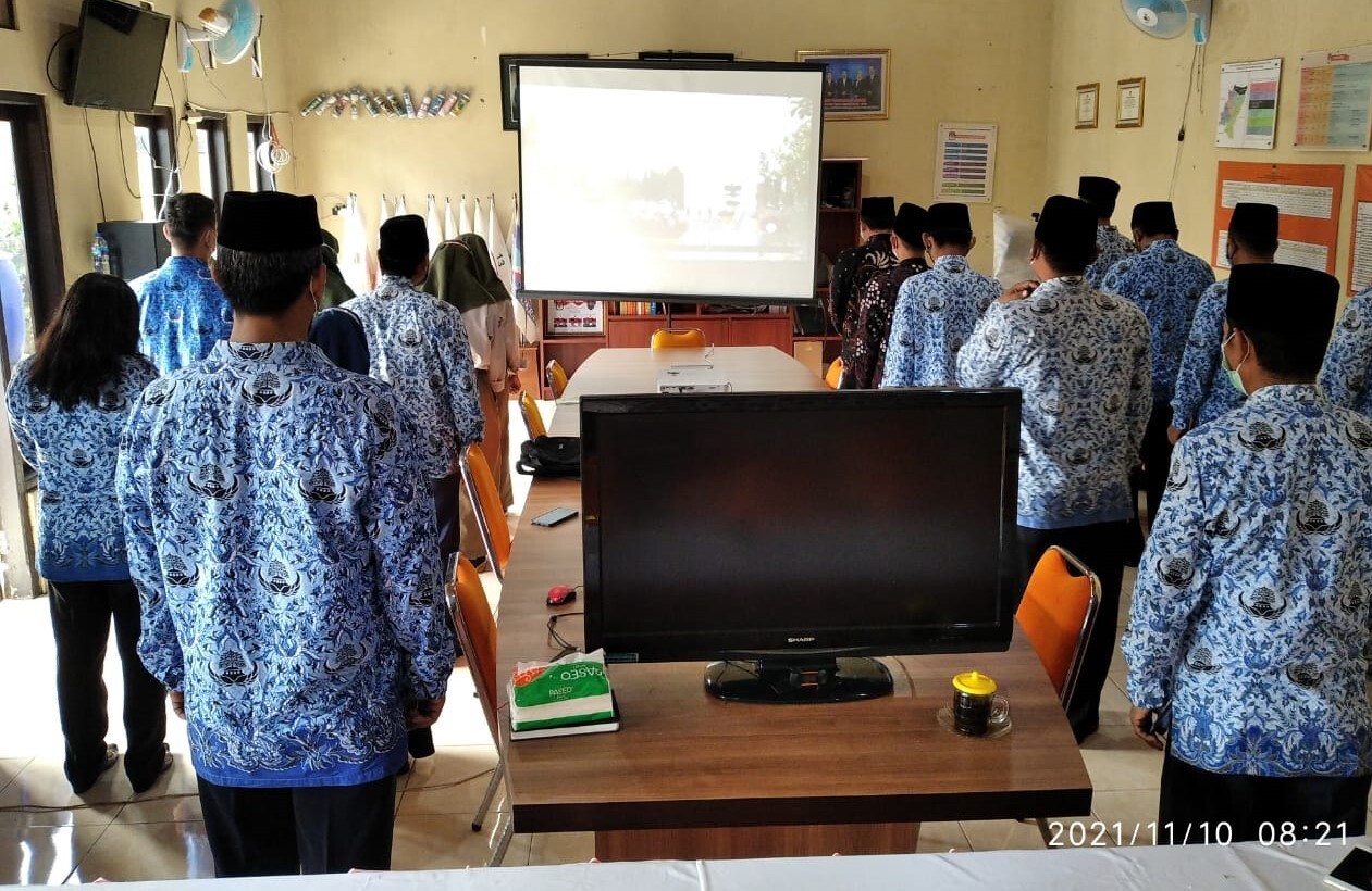 Upacara dilaksanakan melalui daring bersamaan dengan Upacara Hari Pahlawan Nasional yang digelar melalui TVRI.
