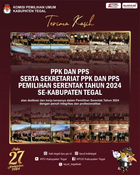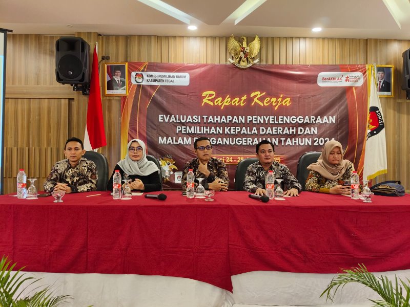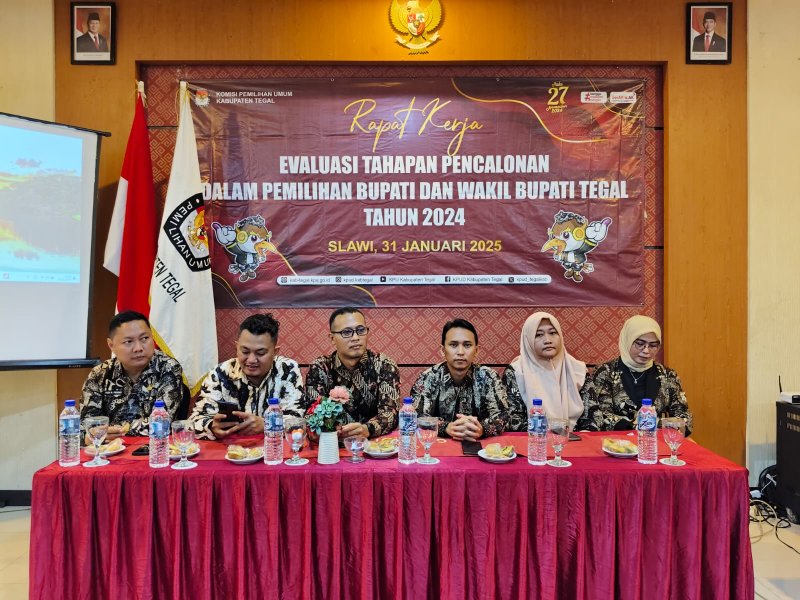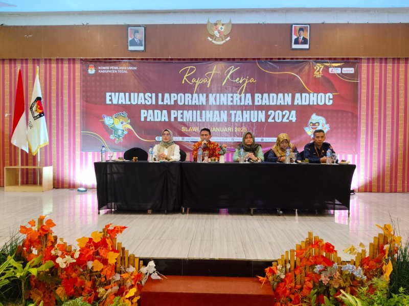Slawi- KPU Kabupaten Tegal mengadakan Rapat Kerja Evaluasi Laporan Kinerja Badan Adhoc Pemilihan Tahun 2024 di Syailendra Hall, Grand Dian Hotel Slawi. Selasa (21/01/2025).