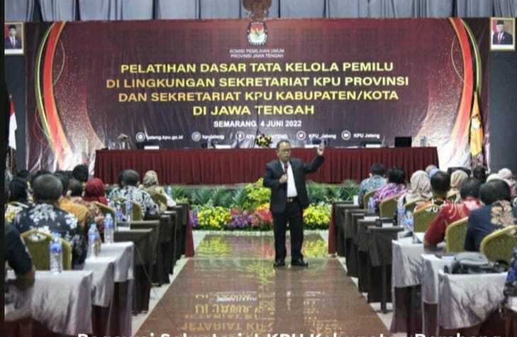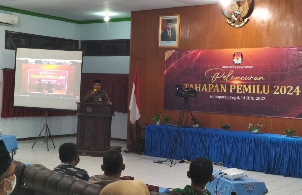 Slawi- Komisi Pemilihan Umum (KPU) Kabupaten Tegal mengadakan nonton bersama Peluncuran Tahapan Pemilu Serentak 2024, Selasa, 14 Juni 2022 di Hall PKK Kabupaten Tegal.