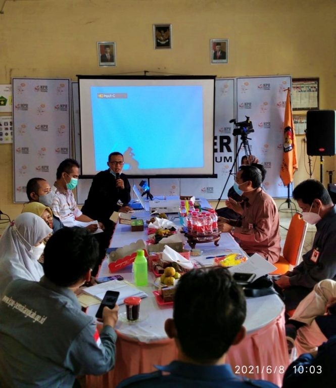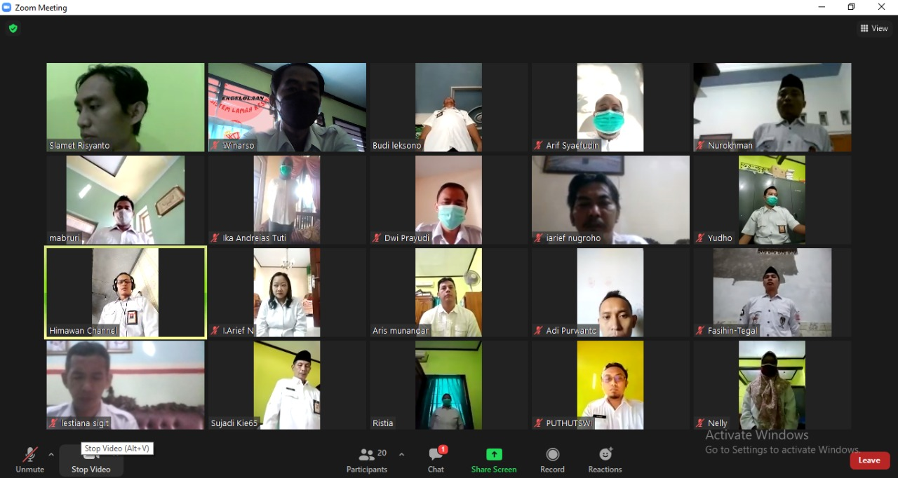 Slawi- Pada hari Senin (12 Juli 2021) KPU Kabupaten Tegal gelar apel pagi secara virtual melalui aplikasi zoom tepat pukul 08.00 WIB. Apel dihadiri seluruh komisioner, pejabat struktural serta pegawai di lingkungan KPU Kabupaten Tegal kendati 100% pegawai dalam posisi bekerja dari rumah (work from home), dengan pembina apel Anggota KPU divisi Sosdikli, Parmas dan SDM, Himawan Tri. P, S.Sos Apel kali ini tidak seperti biasanya dibacakan teks Pancasila dan Undang-Undang Dasar 1945 juga diperdengarkan lagu Kebangsaan Indonesia Raya. Sesuai dengan surat dari Menpan-RB Nomor B/81/M.KT.00/2021 dan Surat Dinas KPU Nomor : 604/SDM.03.5-SD/05/KPU/VI/2021 perihal himbauan pelaksanaan apel pagi. Bagi Apartur Sipil Negara di lingkungan Komisi Pemilihan Umum untuk melaksanakan kegiatan mendengarkan Lagu Kebangsaan Indonesia Raya secara bersama dalam rungan kantor pada setiap hari Selasa dan kamis pada pukul 10.00 WIB, dan himbauan ini mulai dilaksanakan tanggal 1 Juli 2021. Pelaksanaan himbauan ini adalah untuk memelihara dan meningkatkan rasa kebangsaan dan cinta tanah air, pengabdian terhadap negara dan rakyat Indonesia, serta ketaatan terhadap ideolagi Pancasila dan Undang-Undang Dasar Negara Republik Indonesia Tahun 1945 bagi Aparatur Sipil Negara di lingkungan Komisi Pemilihan Umum sangatlah penting dan perlu. Himawan mengingatkan, Apel pagi tetap dilaksanakan, meskipun secara virtual. Karena ini merupakan hal yang sangat penting untuk memberikan energi kepada pegawai agar bekerja sebagaimana tugas dan fungsinya. Tetap produktif, meskipun WFH tidak berarti libur bekerja. Tetap mematuhi protokol kesehatan dengan ketat untuk menghindari penyebaran covid-19 lebih luas lagi. (Win)