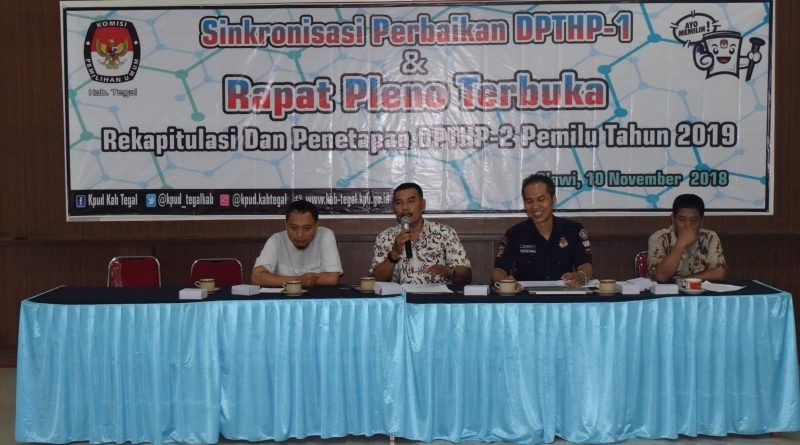 Dalam Sosialisasi yang disampaikan oleh Komisioner KPU Kabupaten Tegal Fasihin, dijelaskan secara rinci alur pemutakhiran data pemilih untuk Pemilu 2019, sekaligus melaporkan setiap data tahapan pemutakhiran daftar pemilih mulai Data Pemilih, Jumlah TPS, DPS, DPSHP, DPT dan DPTHP-1. Pelaksanaan tahapan pemutakhiran Daftar pemilih mestinya setelah ditetapkannya DPT, maka selanjutnya tahapan DPTb dan DPK ujarnya, mengingat saat penetapan DPT oleh KPU RI disampaikan rekomendasi dari Partai Politik dan Bawaslu, akhirnya muncul tahapan baru pasca rekomendasi tersebut berupa DPTHP-1 selama 12 Hari dan DPTHP-2 yang tahapannya selama 60 hari. Hal ini dilakukan untuk mewujudkan Daftar Pemilih yang Komprehensif, Akurat dan lengkap, serta Mutakhir untuk pemilihan Umum Tahun 2019.