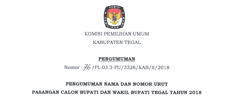 Mari kita sukseskan Pelaksanaan kegiatan Pencocokan dan penelitian pemilih di Kabupaten Tegal untuk pemilihan Gubernur dan Wakil Gubernur Jawa Tengah, Pemilihan Bupati dan Wakil Bupati Tegal Tahun 2018 dengan menjadi pemilih di dalamnya.(Fas)