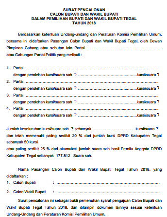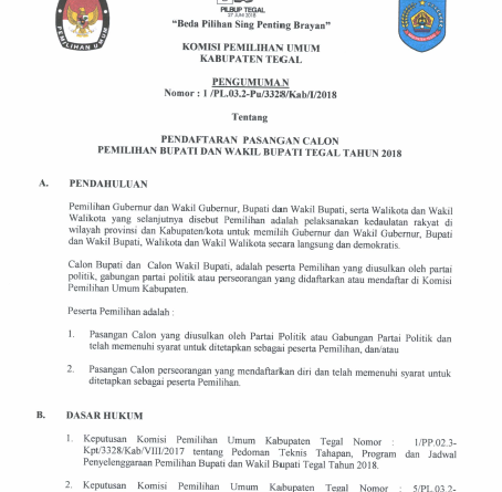 Slawi – Di hari pertama pendaftaran bakal Calon Bupati dan Wakil Bupati Tegal, belum ada Pasangan Calon yang mendaftar secara resmi ke KPUD Tegal, Jawa Tengah.