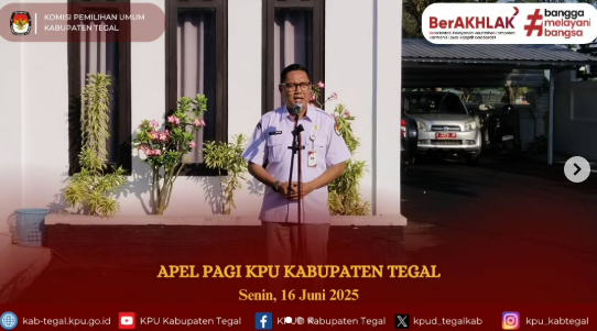 Slawi- Jumat, 13 Juni 2025, Anggota KPU Kabupaten Tegal div. Hukum dan pengawasan, Kasubbag Teknis Penyelenggara Pemilu dan Hukum, serta staf mengikuti kajian rutin "Kamis Sesuatu" seri kelima yang diselenggarakan KPU Provinsi Jateng. Pada kesempatan ini bersama dengan narasumber dari KPU Kabupaten Mandailing Natal dan KPU Kabupaten Wonosobo melakukan kajian mendalam terkait dengan Putusan MK dengan perkara nomor 32/PHPU.BUP-XXIII/2025