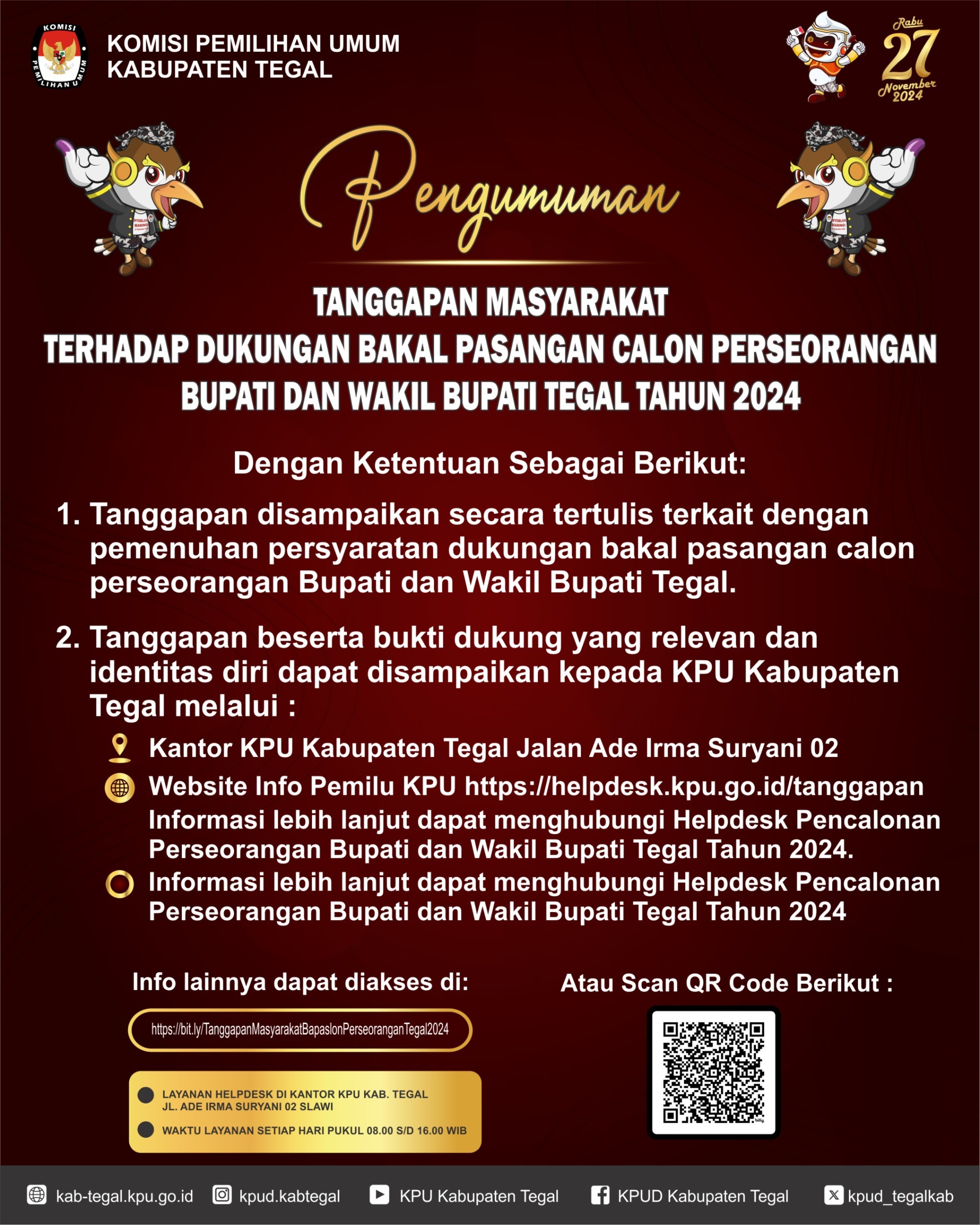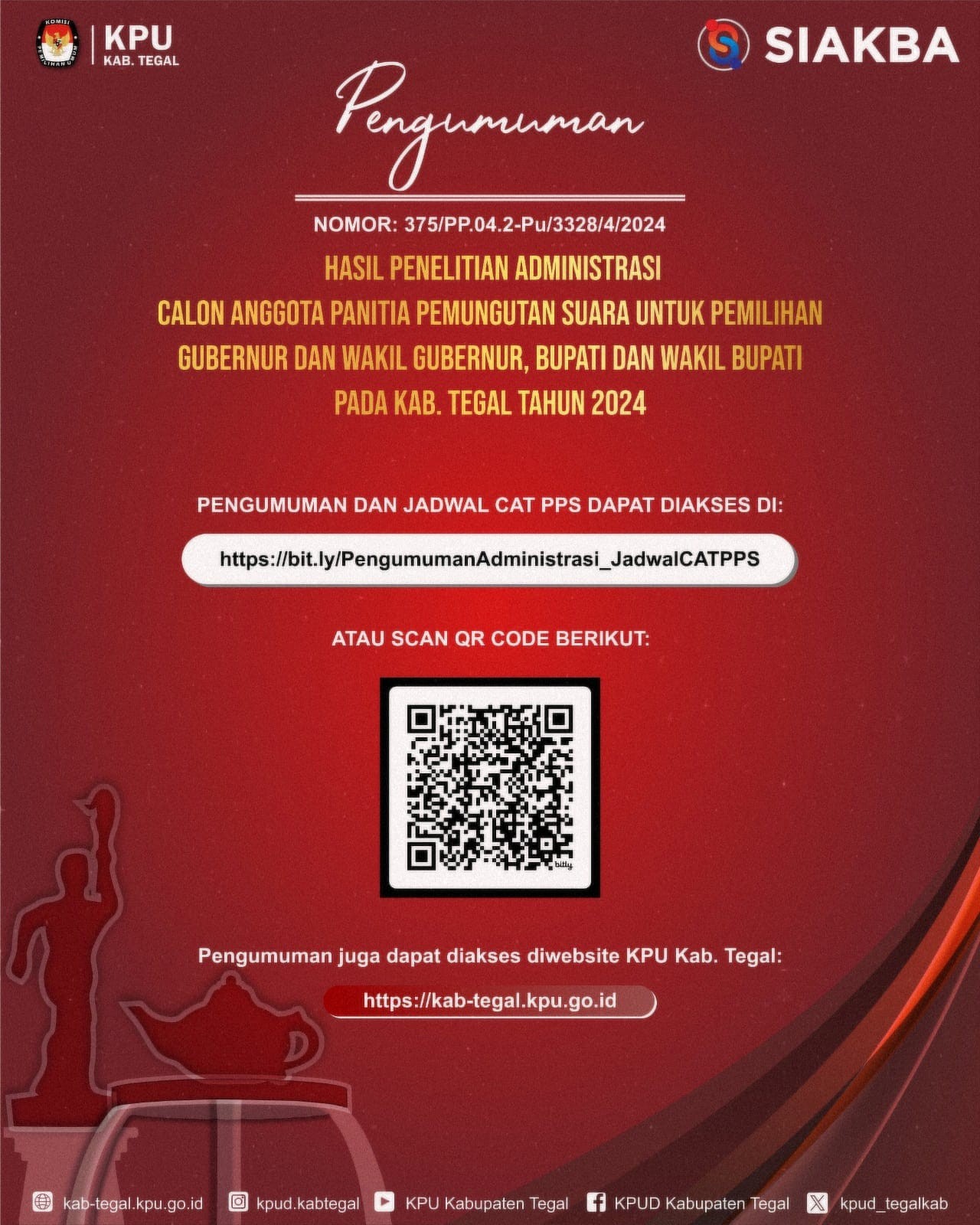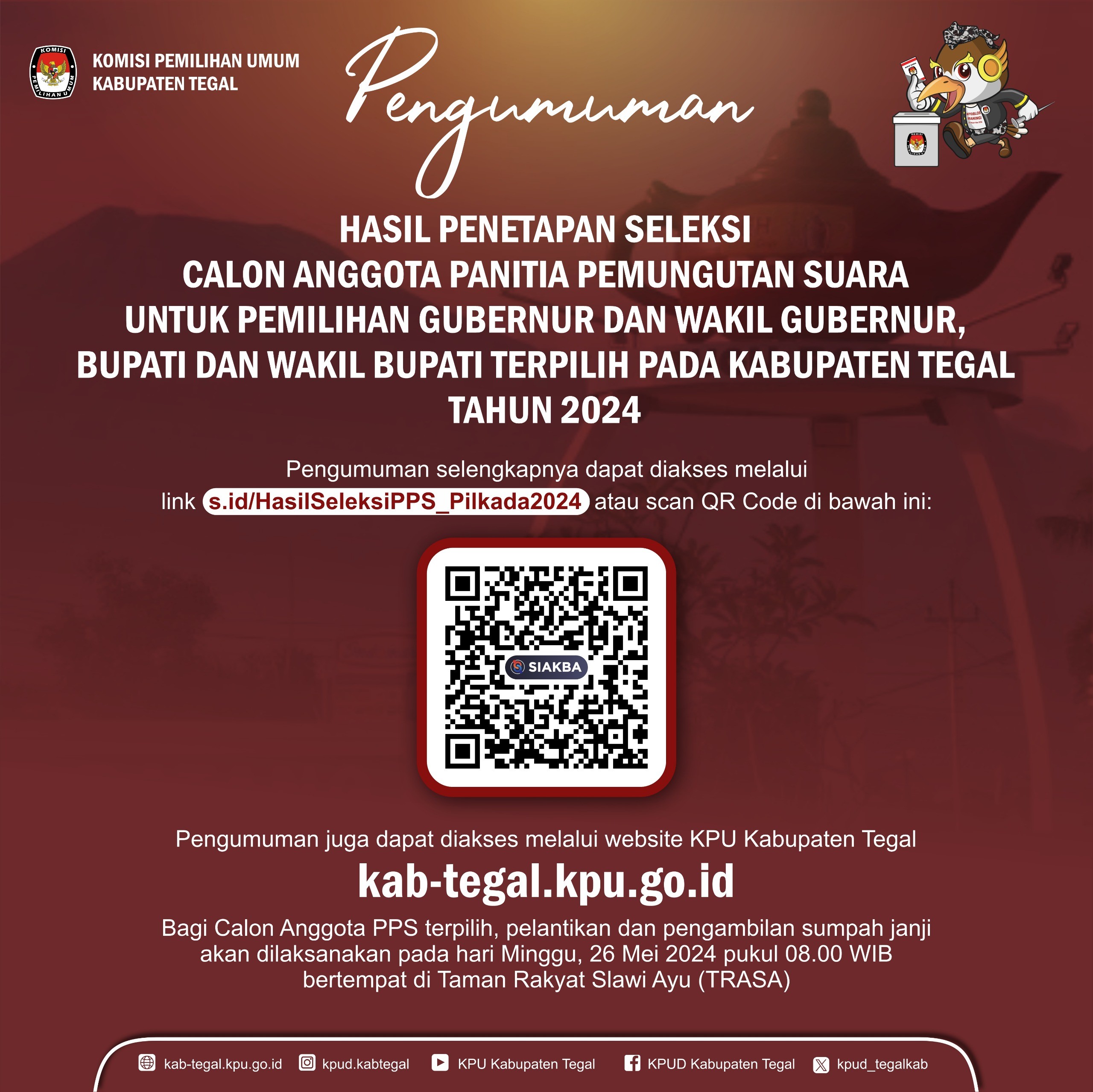 Pengumuman Hasil Seleksi Tertulis dan Jadwal Pelaksanaan Seleksi Wawancara Calon Anggota Panitia Pemilihan Kecamatan Untuk Pemilihan Gubernur dan Wakil Gubernur, Bupati dan Wakil Bupati Pada Kabupaten Tegal Tahun 2024.